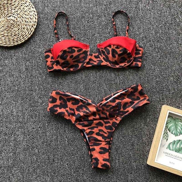 Item Type: Bikinis Set Gender: Women Waist: Low Waist Support Type: Underwire With Pad: Yes Pattern Type: Leopard Model Number: B3583 Material: Polyester,Nylon Fit: Fits true to size, take your normal size Brand Name: OMKAGI is_customized: Yes Quality: A+++